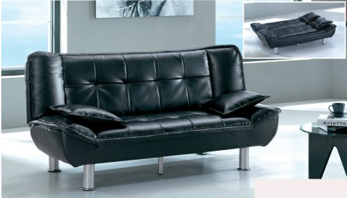 Sofa Sleeper. Adjustable Back, Easy to Use Klik Klak Mechanism, Black Vinyl Sofa Futon Bed Sleeper, Includes Two Pilows Feature
